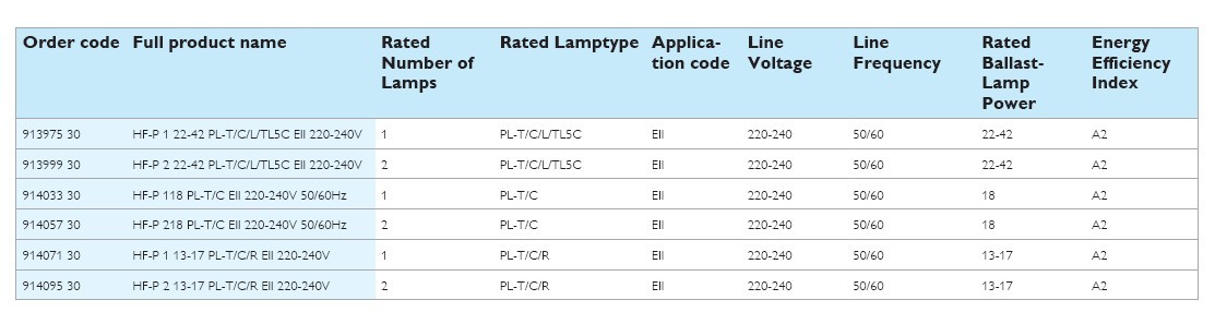 HF-Performer EII PL-T/C/R/T5c is a sustainable, slim and high-frequency electronic ballast for a wide range of CFL- ni applications. It is ideal for applications where high energy efficiency is required. The HF-Performer EII range has a robust design, meets all relevant international safety and performance standards and is energy-efficient (CELMA EEI A2).