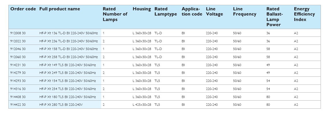 HF-Performer II Xtreme for for TL5/TL-D lampsHF-Performer Xtreme is a unique X-technology from Philips that guarantees the highest lifetime reliability for lamps and enables an extra-long and reliable HF system life with an energy efficiency index (CELMA EEI) of A2.