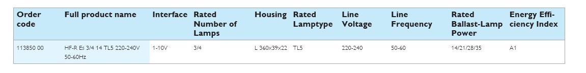 High-frequency electronic dimming ballast, using the analog protocol (1-10 V) for TL5 HE/HO and TL5 Eco lamps