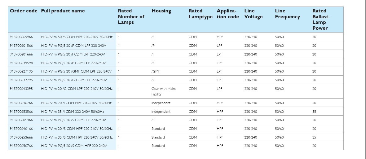 • Optimal lamp performance thanks to minimal lamp power tolerance